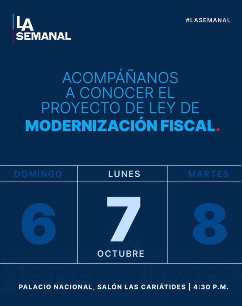 El presidente de la República, Luis Abinader, presentará este lunes en La Semanal con la Prensa, el proyecto de Ley de Modernización Fiscal, conocido como la reforma fiscal.